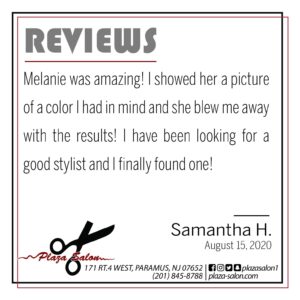Plaza Salon is one of the most convenient, service oriented and affordable salons in New Jersey. With walk–ins always welcome, our salon is always fully staffed to meet your needs. We are easily located on Route 4 West in Paramus, New Jersey offering quality service with excellence and a smile. Our family run salon has become known for our customer friendly environment and accommodating service.